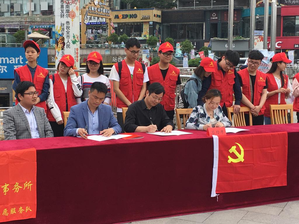 法学专业的教授、学者们协同法学专业青年学生志愿者与子城律所的律师、专家一起为广大市民提供法律援助、咨询服务。本次服务也从服务地点、服务时段等多个方面尽可能做到“人性化”,从以往的“法律援助中心、高校定点”扩散到大型的生活场所、平台,给有需要的群众更大的受益面。也结合此次协议书签订、协议的平台服务更多群众,本次活动也受到了江南摩尔附近群众的广泛好评和认可。