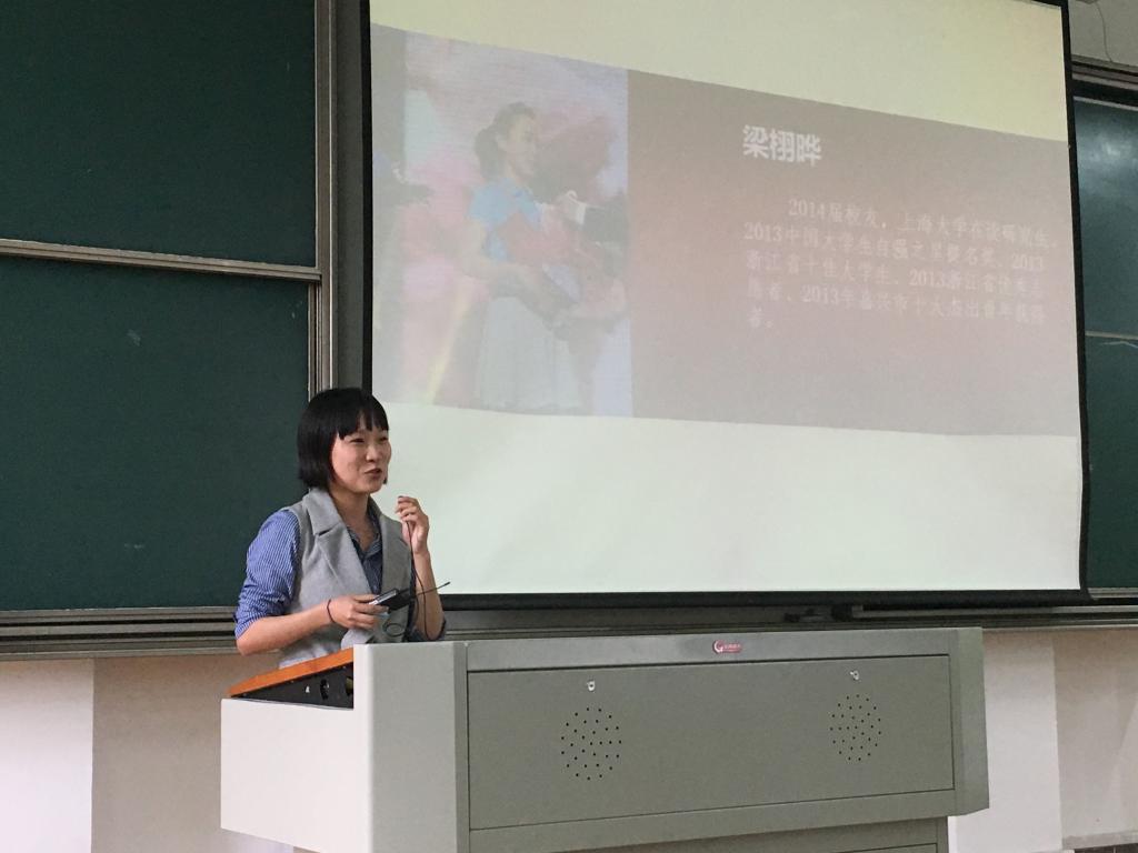 陈英校友讲述了他曾在四川参与的“两项计划”,深入到贫困地区支教,从一开始的孤独,到后来的成就感,他说只要带着梦想有一颗奉献之心,就一定能拥有更多的快乐。许锋校友通过自己峰回路转的创业经历展开,历经多次云诡波谲的创业迷雾,寻找到自己的“正规”,他给同学学业和创业规划提出宝贵的意见。梁栩晔校友曾休学在湖南湘西的所德小学支教,她利用微博为贫困小学的学生募集衣物、生活费,更是顶着社会的压力,曝光凤凰县营养午餐缩水的问题,她的担当精神得到了认可,今天她选择了社会服务专业读硕,也是希望能更有效益地去进行社会活动,继续自己的青春梦。