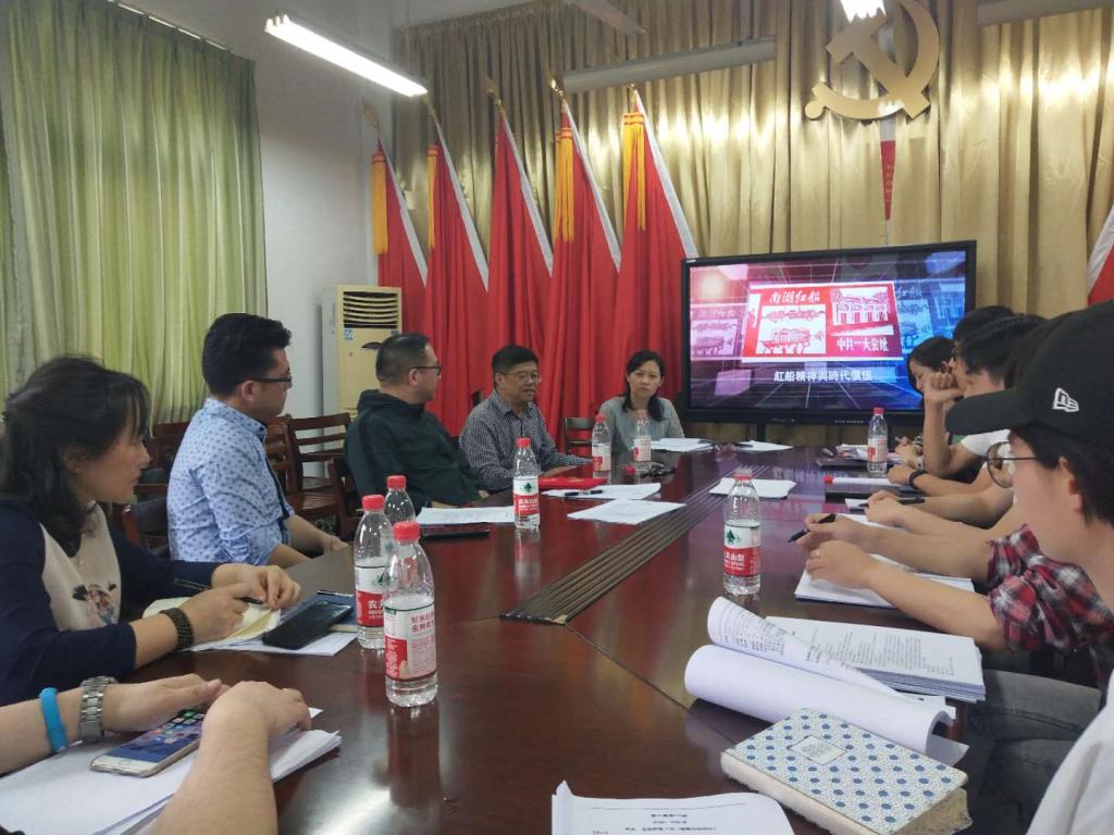 《初心》创作团队诚邀邀宁波大学梁卿教授等导演、舞美设计老师共同参与我校话剧《初心》的二度创作,就话剧剧本改编、具体编排展开创作讨论。校党委副书记严从荃亲自到场关心《初心》的下一步工作并进行了指导,也对初心创作团队寄于厚望,并感谢校外专家团队的加入和支持。