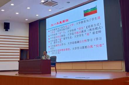 讲座中,步教授首先通过“为什么要上大学?”指出大学对于个体在学习、能力等各方面的巨大影响。其次,步教授总结了大学的普遍困惑:环境适应、角色重整、人际交往、交友恋爱、职业选择等,在大学这个新起点如何适应新的学习环境和生活环境?他列举了几点容易出现的学习能力问题、人际关系问题及职业目标问题,同时也为同学们提供了如下建议:一是学会学习,二是学会与人共处,三是学会适应环境。最后,步教授给同学们提出问题:如何规划大学生活?在如今严峻的就业压力环境下,大学生应当如何规划自己?他从施瓦辛格的人生规划,提醒同学们确立目标的重要性。更要做好心理调适,建议大学生应当处理好自己与他人的关系、与环境的关系以及与自己的关系。