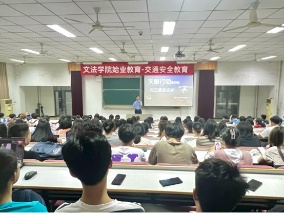 在博闻楼7号报告厅举行2022级新生始业教育之交通安全教育讲座。讲座由嘉兴市公安局交通警察支队城南中队时宇杰指导员主讲,2022级全体新生参加讲座。