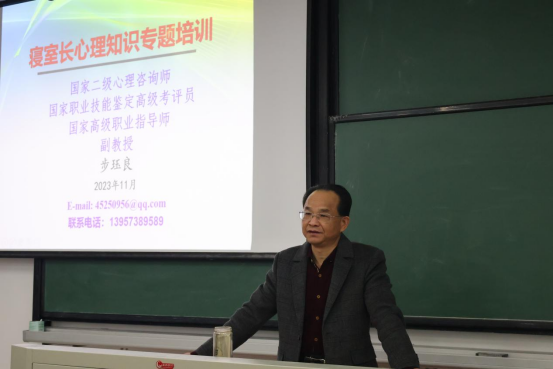最后,步教授对寝室长的工作提出八点要求,希望各位寝室长可以严格落实相关要求,认真负责地完成自己的工作。本次培训旨在提升寝室长的心理辅导能力,帮助同学们更好的融入校园生活,得到了同学们的一致认可。
