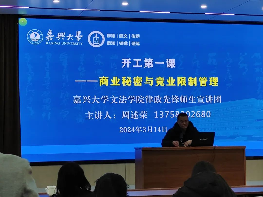 “律政先锋”法援行动“百名法学师生进百企”活动第一站在平湖独山港镇举行。本次活动是为贯彻落实全省“新春第一会”精神,全面加强“三支队伍”中高素养劳动者队伍建设,进一步营造稳定有序的就业和用工环境,扎实做好企业用工管理和劳动者权益保障工作,努力构建和谐稳定的劳动关系的重要行动。宣讲团由周述荣老师带队学生支部党员前往。