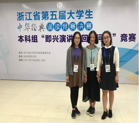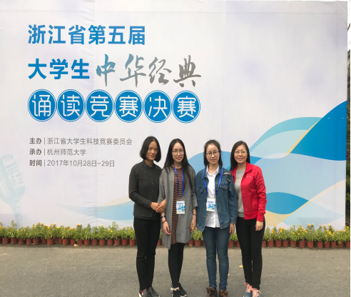 领导非常重视选手的选拔和培训,组织指导教师团队从经典诗文的朗诵、经典诗文的解析、演讲稿的写作、演讲实战技巧等方面对选手进行了专题培训。面对浙江传媒大学、绍兴文理学院等传统强队,我校选手李乐洁、夏颖超、南品怡、贺盈盈在熊芬兰、张皎、步珏良等老师的指导下认真准备沉着应战,从激烈的角逐中脱颖而出,取得了2个二等奖,2个三等奖好成绩。