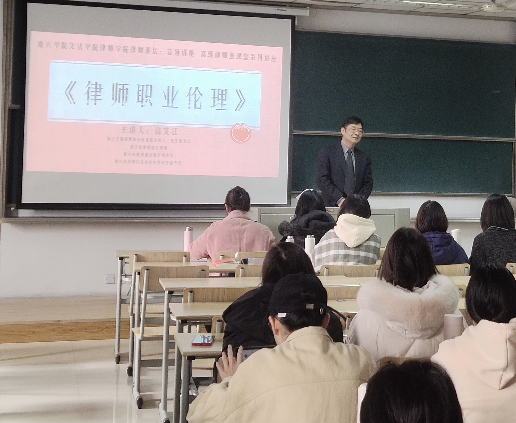 法律系2018级的课堂上迎来了一位特别的老师。浙江子城律师事务所高级合伙人,党支部书记高文江律师来到《法律职业伦理》的课上与师生一起探讨了《律师惩戒的制度与实务问题》。