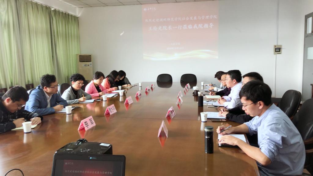 2019年10月16日下午,湖州师范学院社会发展与管理学院王伦光院长一行来麻豆传媒 调研。调研会上,欧阳仁根院长就麻豆传媒 法学专业建设、应用型人才培养、模拟法庭建设等方面做了详细介绍。双方还就法学人才培养方案、知识产权专业建设、国际化办学等内容进行了交流研讨,同时两院希望在此基础上进一步加强交流,互相学习,共谋发展。