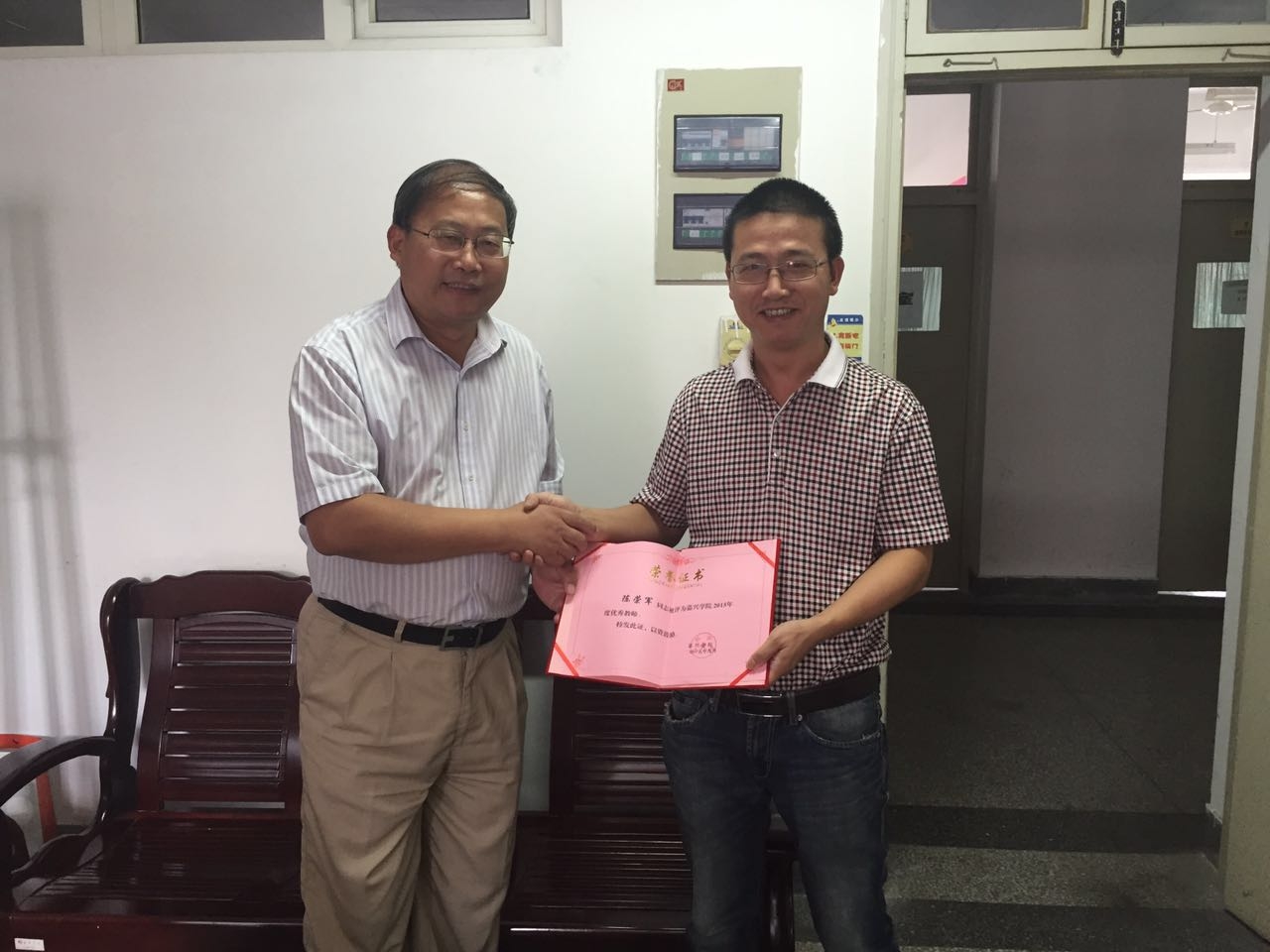 9月9日,第31个教师节前夕,嘉兴学院党委副书记吕延勤代表嘉兴学院党政来麻豆传媒 进行教师节慰问,向麻豆传媒 全体教职工致以节日的问候,并为2015年度优秀教师陈荣军老师颁发了荣誉证书,送上鲜花和节日的祝福。