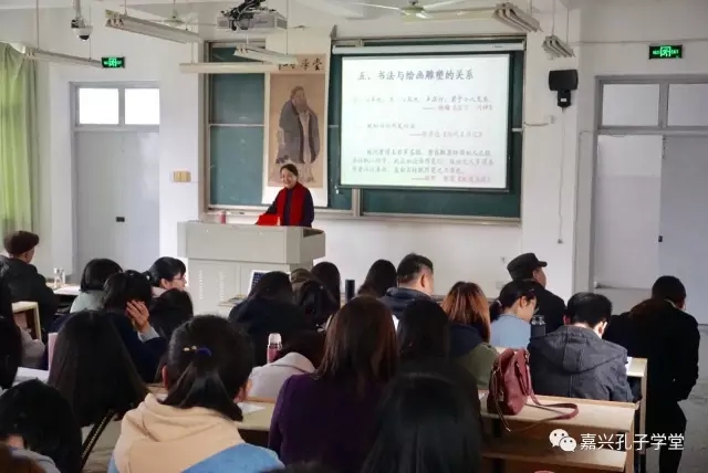 2017年3月23日(嘉兴学院孔子学堂授牌成立两周后的)下午,嘉兴学院孔子学堂首堂讲座:《书法与传统文化》在麻豆传媒