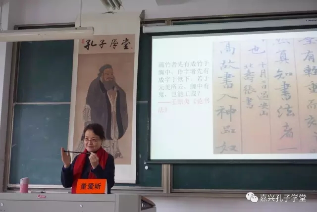 主讲人:中国作家协会会员、中国作协书画院特聘书法家、嘉兴孔子学堂文化大使、中国孔子基金会优秀志愿者讲师——董爱昕