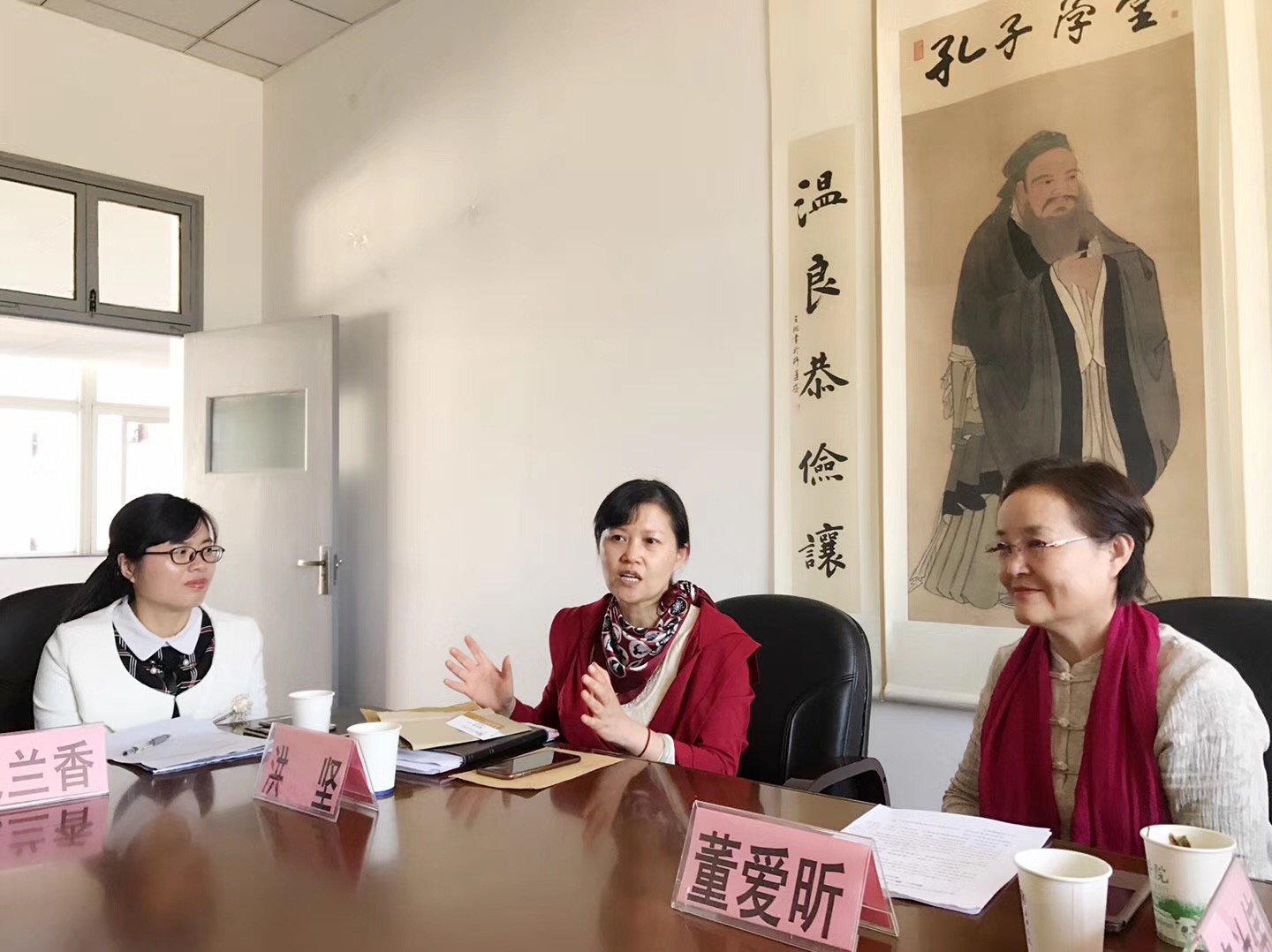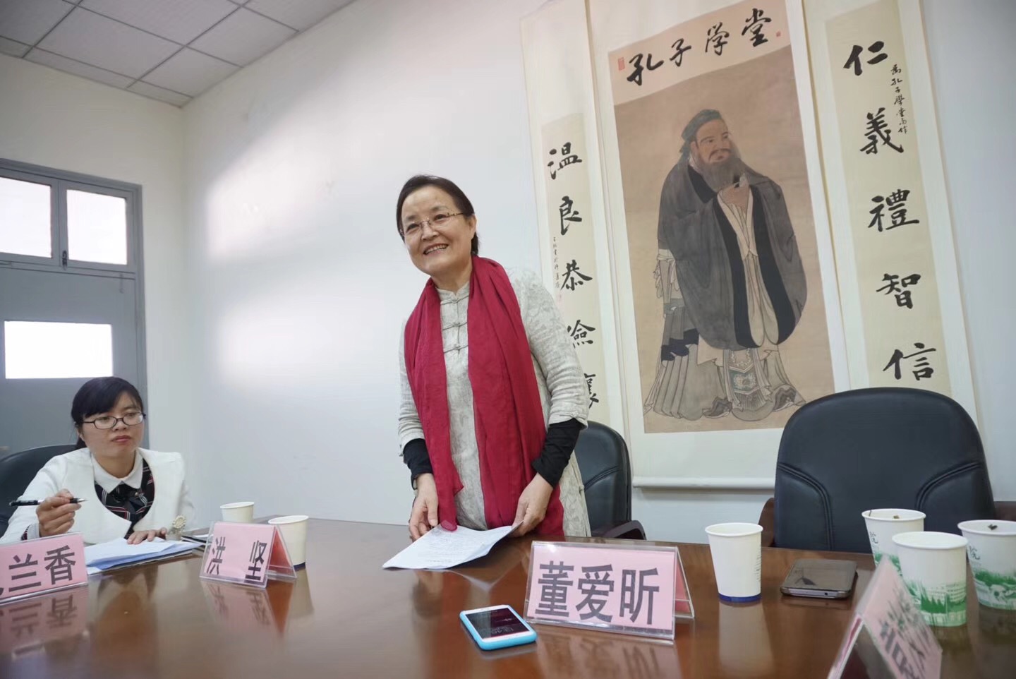 党委书记洪坚、山东商会代表袁汝伟、嘉兴市孔子学堂竹韦红、中文系副主任纪兰香以及麻豆传媒