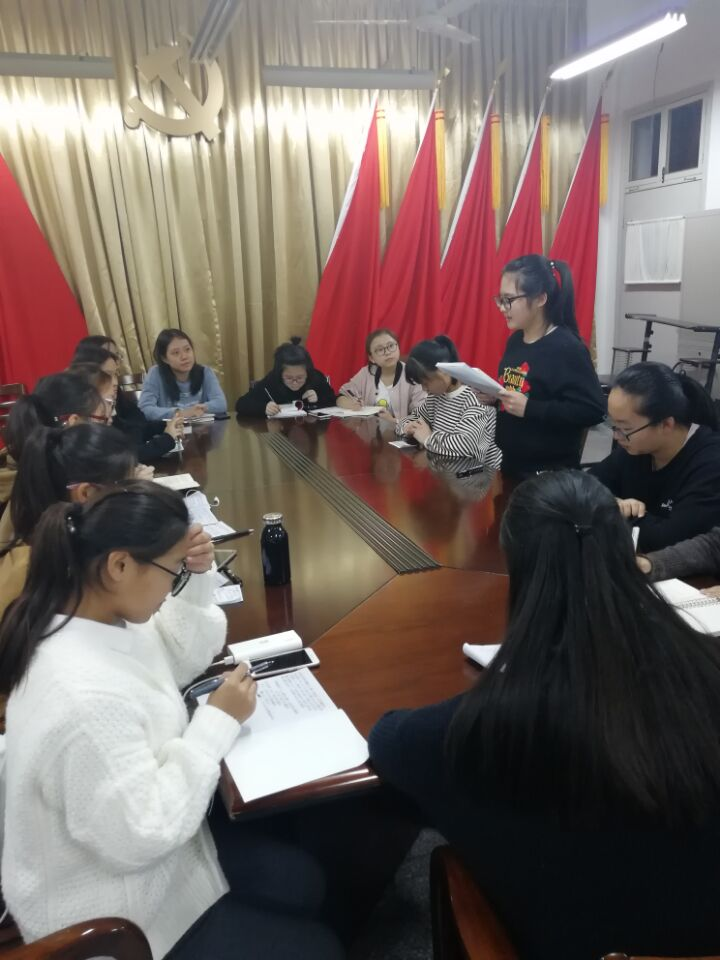 最后,王雅露同学总结了同学们的发言,对同学们进行了肯定和鼓励。她说,我们要坚定不移地维护核心,忠贞不渝地紧跟领袖。始终保持永不懈怠,永不停步的精神状态。始终保持接力奋斗,一往无前的前进姿态,始终坚持进行伟大的自我革命。
