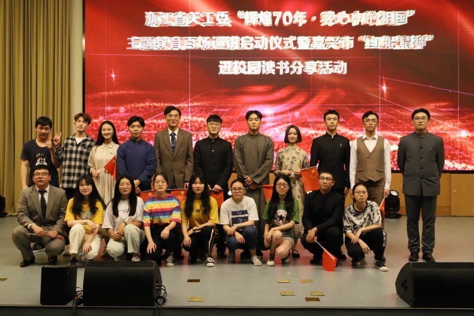 2019年6月20日,嘉兴学院红船剧社受嘉兴市关工委、嘉兴市教育局共同邀请,前往嘉兴高中园区参加浙江省关工委“辉煌70年,我心中的祖国”主题教育百场巡讲启动仪式暨嘉兴市“红船精神”进校园读书分享活动并演出原创红色话剧《初心》。