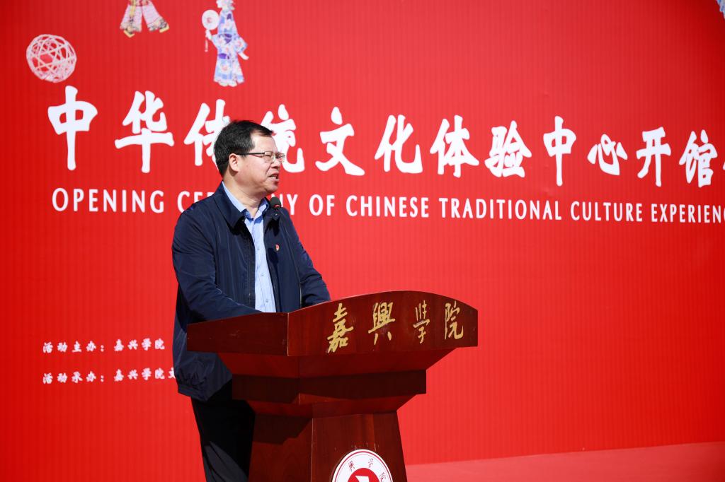 吴云达在致辞中指出,中华优秀传统文化是中华民族的文化根脉,是坚定文化自信、积聚更深沉更持久力量的重要源泉。多年来,学校始终将弘扬中华优秀传统文化、传承保护地方文化遗产作为履行文化传承创新使命的一项重要内容,深入开展地方文化研究,深入开展文化铸魂育人,深入开展文化传播弘扬,取得了丰硕成果。他强调,中华传统文化体验中心的开馆,不仅为提升我校师生文化艺术素养、实施文化育人创建了新模式,也为地区传统文化交流和展示提供了新平台。他要求,学校要以此为契机,充分发挥师资力量与学科优势,深入挖掘嘉兴地方文化特色,深度开发传统文化课程,深层次开展传统文化体验活动,引导全校师生提升道德情操、树立良好风尚、增强文化自信,发扬光大中华传统文化,同时为繁荣地方文化、促进嘉兴全民素质提升作出积极贡献。