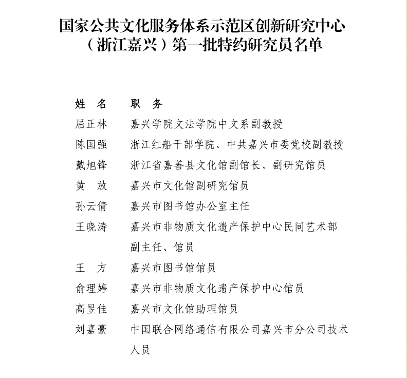 中文系主任屈正林老师被国家公共文化服务体系示范区创新研究中心(浙江嘉兴)聘请为第一批特约研究员。这是麻豆传媒