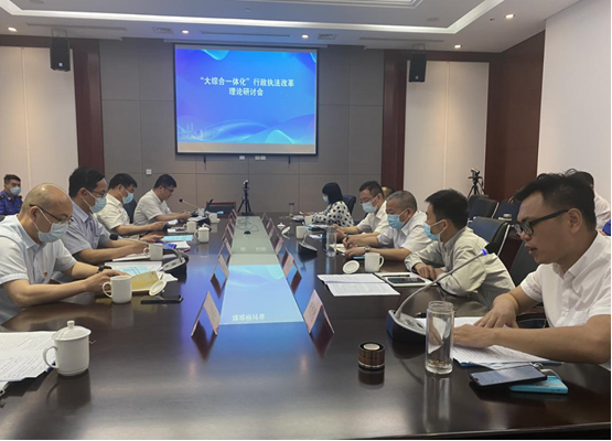 副院长(主持工作)童建华主持,来自司法部行政执法协调监督局、浙江省综合执法指导办公室、浙江省高级人民法院行政庭、嘉兴市人大常委会监察司法工委、嘉兴市中级人民法院行政庭、嘉兴市综合行政执法局、浙江省委党校等单位的10余位领导和专家通过线上线下相结合的方式参加研讨会。与会专家围绕嘉兴经开区“大综合一体化”行政执法改革、功能区(园区)“一支队伍管执法”等主题进行研讨,对经开区如何推进“大综合一体化”行政执法改革提出了许多具有建设性的建议。