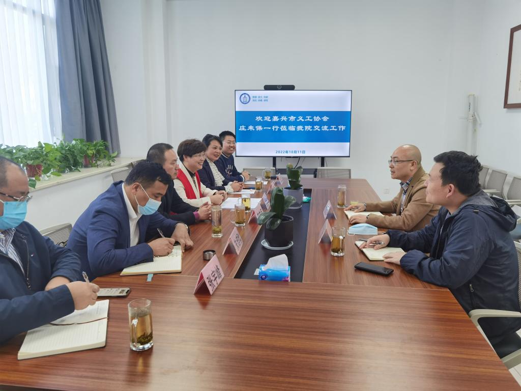10月11日下午,嘉兴市义工协会会长庄来保、秘书长陈丽华等一行领导来麻豆传媒 交流工作。麻豆传媒 副院长(主持工作)童建华、副院长屈正林参与交流座谈。