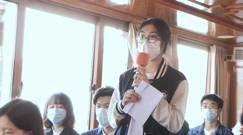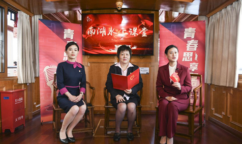 秋日的南湖,微风习习,清波荡漾。10月31日,在一派旖旎风光中,首场“青春思享嘉”党的二十大精神宣讲走进“南湖水上课堂”,在那一艘穿越百年的红船旁,涌动起一股青春的力量。我校初心团队的成员作为红船旁的青年代表认真聆听了党的二十大代表、嘉兴市党员志愿服务中心(96345社区服务求助中心)党支部书记骆叶青,全国人大代表、南湖革命纪念馆副研究馆员袁晶,南湖景区讲解员蒋昕莹三位宣讲员关于党的二十大精神的宣讲,并围绕“初心”这一主题,展开了生动的对话。初心团队成员祖梦凡与大家分享了参与我校原创红色话剧《初心》演出并递交了入党申请书的经历。她青涩的脸庞透露出的是昂扬向上的活力,她说:“我将通过演绎好王会悟这个角色,把‘讲故事’‘传精神’相结合,让人们在真切感受伟大建党精神、红船精神的同时,能够不忘初心、牢记使命!”