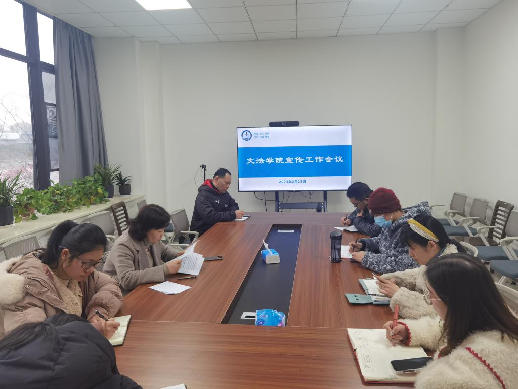 在厚德楼268会议室召开2023年宣传工作会议。学院各部门宣传工作人员参加会议,会议由党委书记洪坚主持。