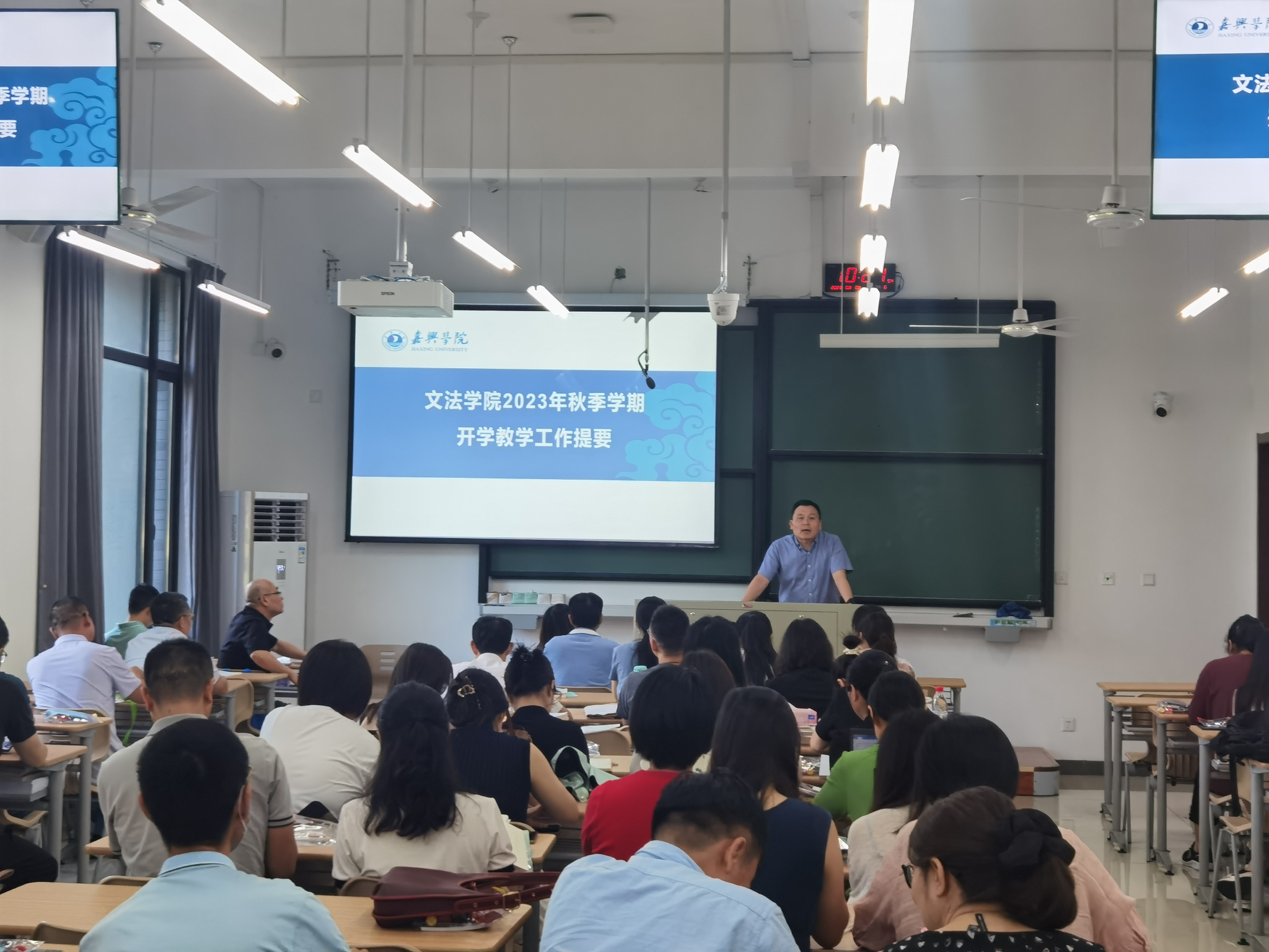 会前,中文系副主任黄哲带领全体教师学习了《嘉兴学院教师教学工作业绩考核办法》。会上,童建华副院长(主持工作)带领全体教职工学习了习近平总书记在北京出席文化传承发展座谈会发表重要讲话精神及习近平总书记法治思想等内容。并对学院近期亮点工作、学院务虚会精神以及2023年下半年工作要点进行解读及部署。屈正林副院长对新学期开学教学准备、教学项目验收、留学生教学工作、2023届毕业生论文抽检等工作进行了详细的讲解及安排。会议强调,学院全体教职员工要锚定目标,聚焦工作重点,凝聚共识,推进学院事业取得高质量发展。