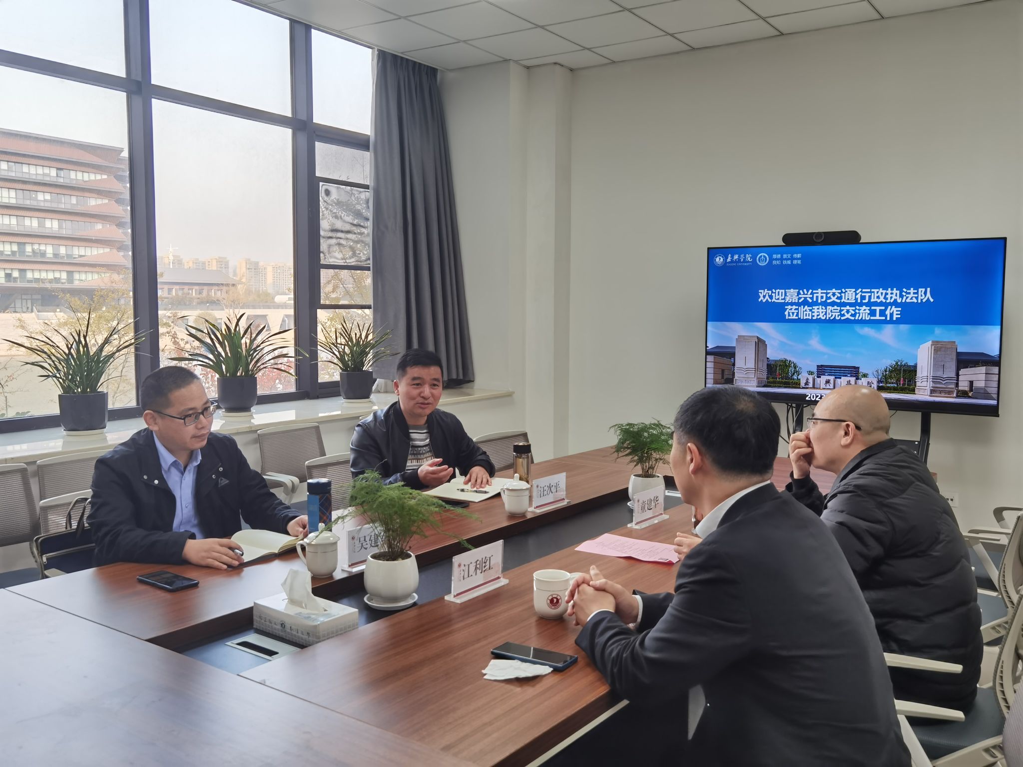 11月28日,嘉兴市交通运输局法规处处长、交通行政执法队副队长汪次平带队来麻豆传媒 交流工作。麻豆传媒 副院长(主持工作)童建华、华东政法大学教授江利红参加座谈。