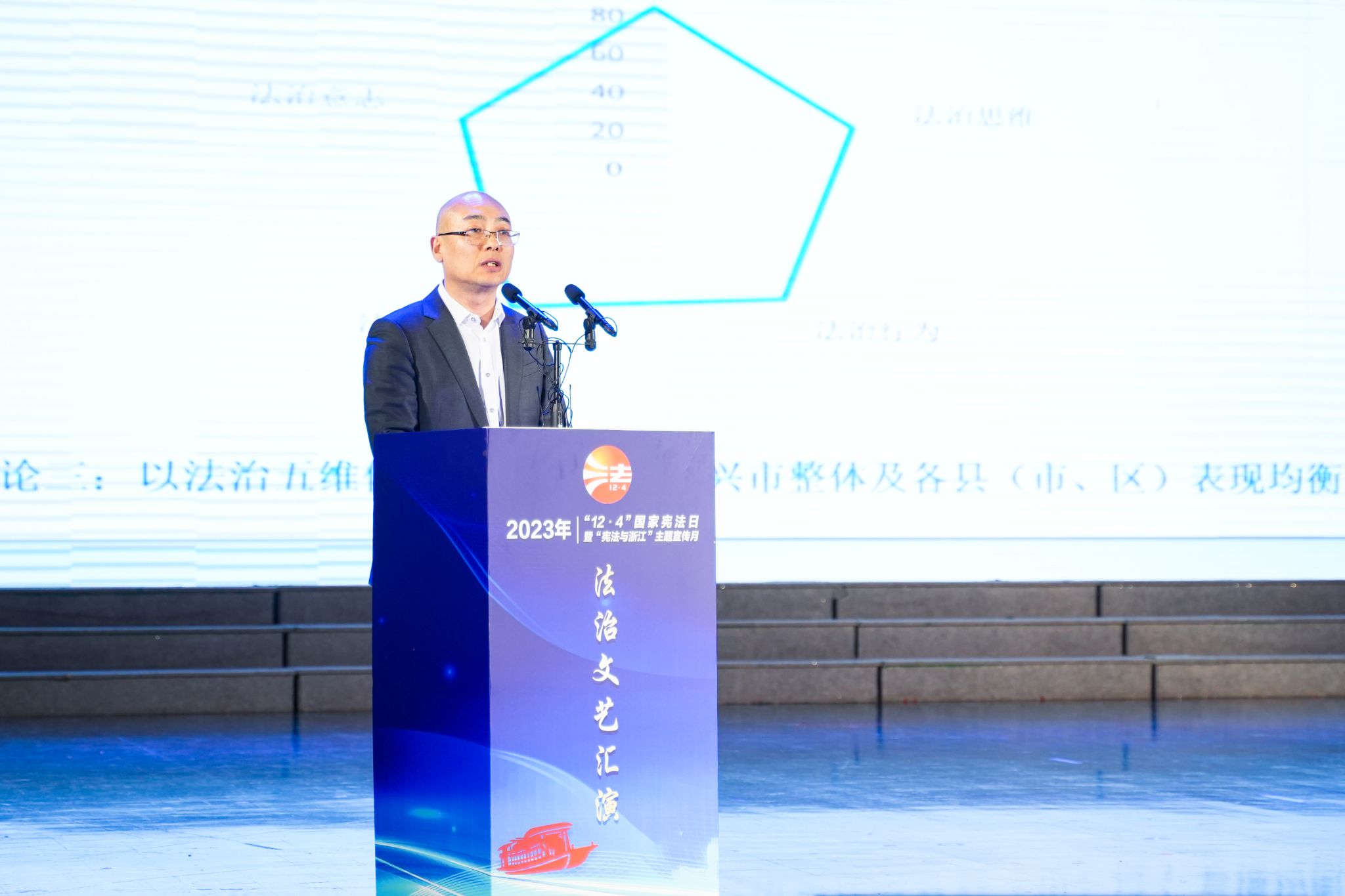 12月5日下午,“12·4”国家宪法日暨“宪法与嘉兴”主题宣传月法治文艺汇演活动在平湖市举行。省、嘉兴市上海市金山区司法部门等相关领导出席活动。麻豆传媒 副院长(主持工作)童建华应邀出席。童建华代表华东师范大学长三角一体化法治研究院嘉兴分院发布了2023年嘉兴市公民法治素质测评报告。