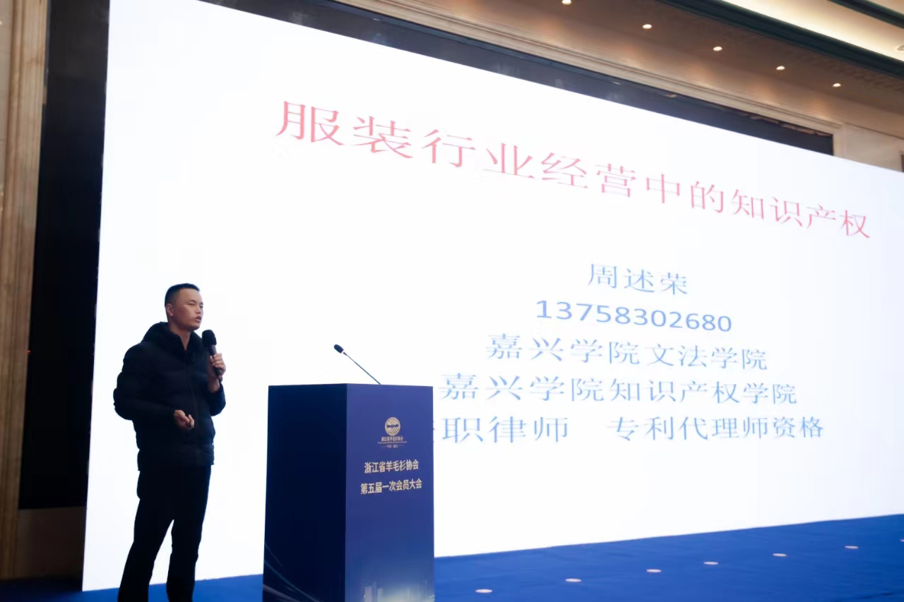 12月6日下午,浙江省羊毛衫协会第五届一次会员大会在桐乡市振石大酒店召开,嘉兴学院麻豆传媒 、知识产权学院周述荣老师应邀作知识产权讲座。