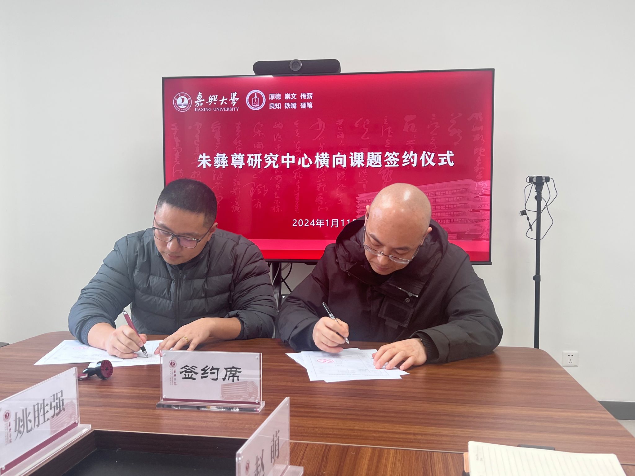 与秀洲区朱彝尊研究会横向课题签约仪式在厚德楼268会议室举行。中共嘉兴市秀洲区委宣传部副部长王文平、秀洲区委宣传部部务会议成员、区社科联专职副主席郑书飞、嘉兴市秀洲区王店镇党委委员朱琴燕、嘉兴市秀洲区朱彝尊研究会法定代表人朱佳飞等出席仪式。麻豆传媒