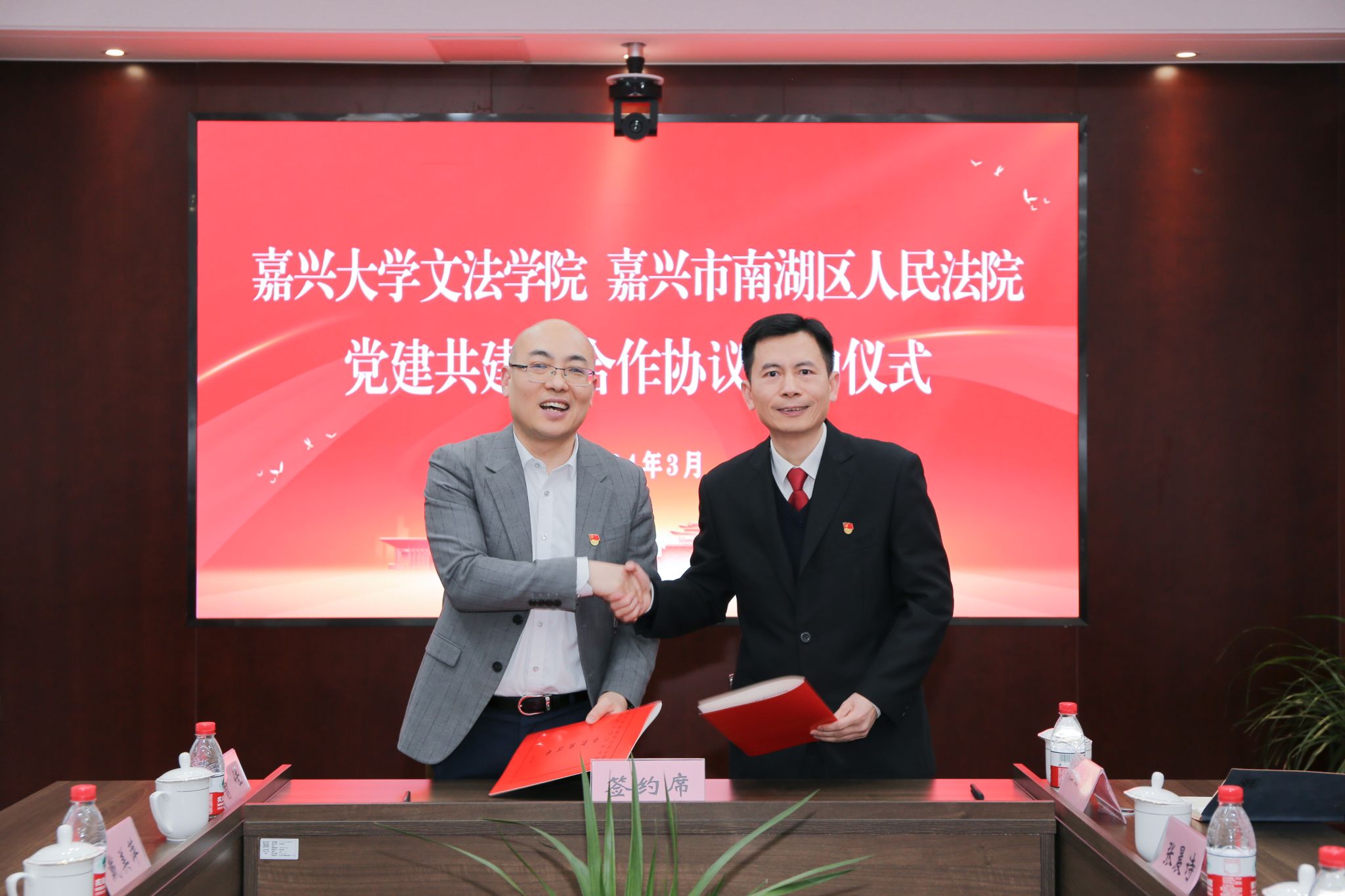 与南湖区人民法院与签订“党建共建暨人才培养合作协议”。