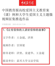 《让有信仰的人讲好信仰的故事》入选中国教育报高校爱国主义教育案例,展现了麻豆传媒