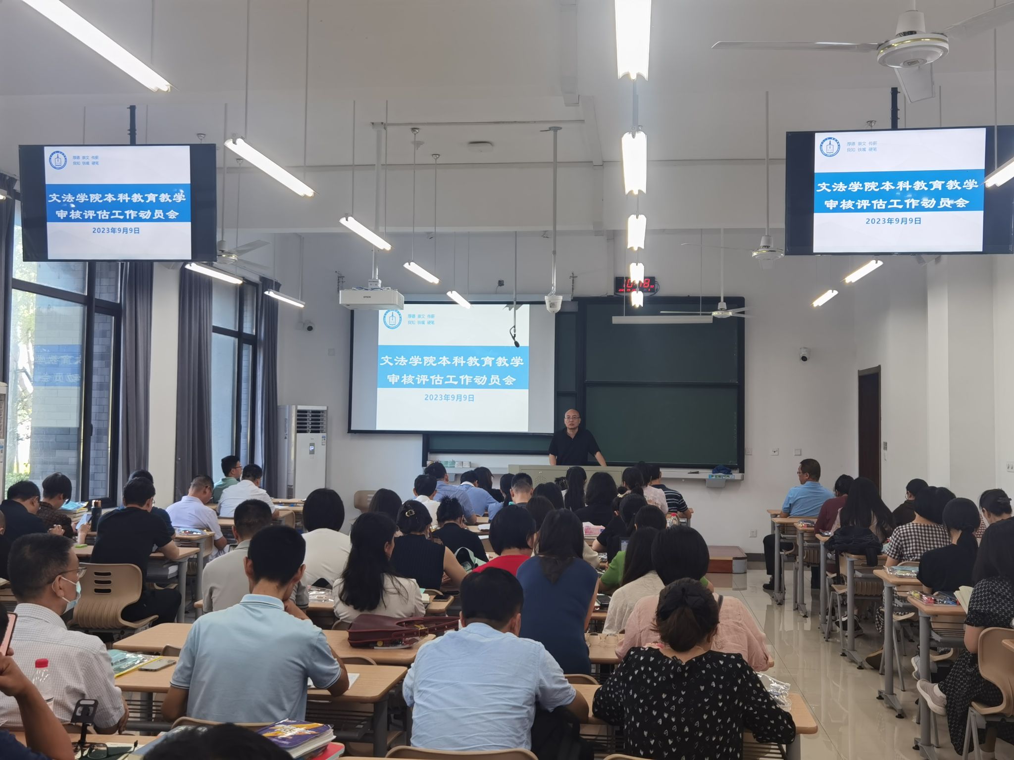 本科教育教学审核评估工作方案》进行了解读,通报了学院审核评估工作的整体推进情况、工作时间节点及下一步重点工作安排。明确要求全院教职员工增强政治自觉、思想自觉、行动自觉,提高认识,在做好本职教育教学工作的同时,全力以赴做好审核评估各项准备工作。校教学督导委员会委员、学院督导委员会主任步珏良对教学秩序,教学水平、课堂教学质量等方做了工作提示,同时提出任课教师要主动查找存在问题、明确解决思路,发挥“以评促建”的作用,进一步提升内涵建设。