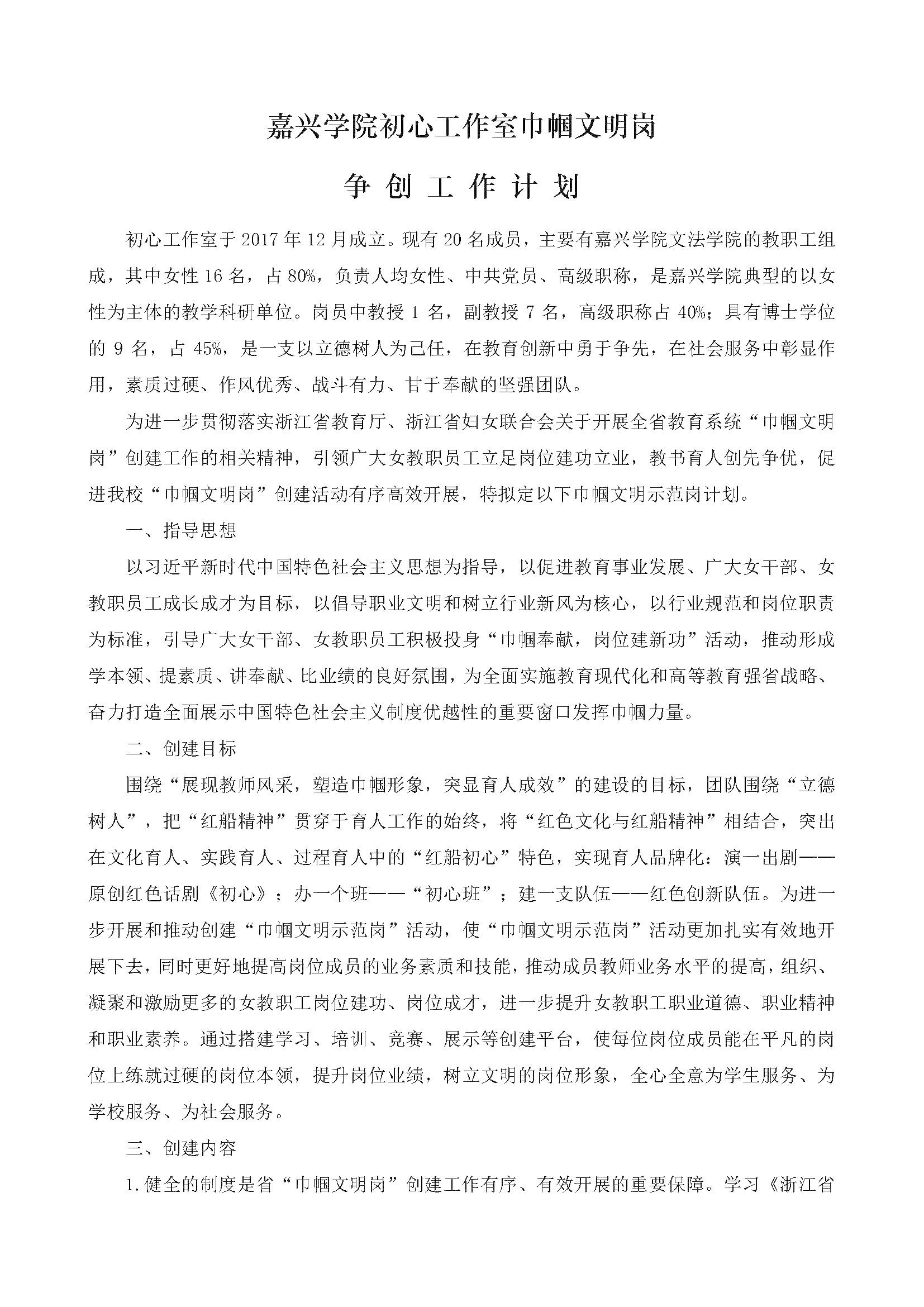 嘉兴学院初心工作室巾帼文明岗争创工作计划