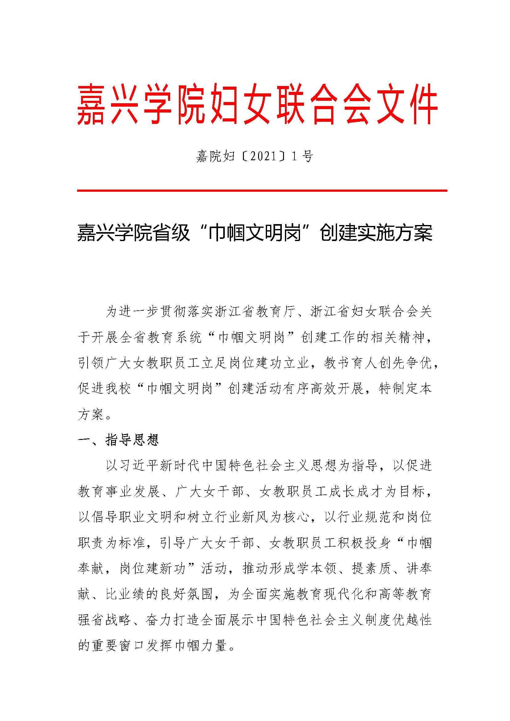 嘉兴学院省级“巾帼文明岗”创建实施方案