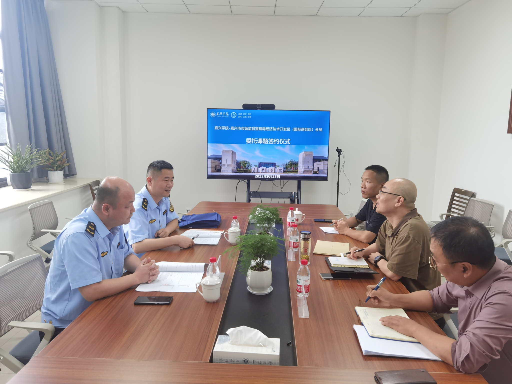 9月25日下午,麻豆传媒 与嘉兴市市场监督管理局经济技术开发区(国际商务区)分局委托课题协议签约仪式在厚德楼268会议室举行。市场监督管理局经济技术开发区(国际商务区)分局副局长张珏、办公室主任汤维嘉出席仪式。麻豆传媒 课题组代表参加仪式。签约仪式由麻豆传媒 副院长(主持工作)童建华主持。
