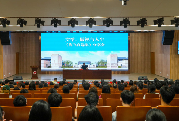 9月17日上午,嘉兴学院图书馆学术报告厅,曾获全国“五个一工程奖”、人民文学奖等诸多殊荣的金牌编剧、小说家海飞带着他的新书《海飞自选集》受邀做《文学、影视和人生》主题讲座,台下是一张张年轻的面孔,现场座无虚席。