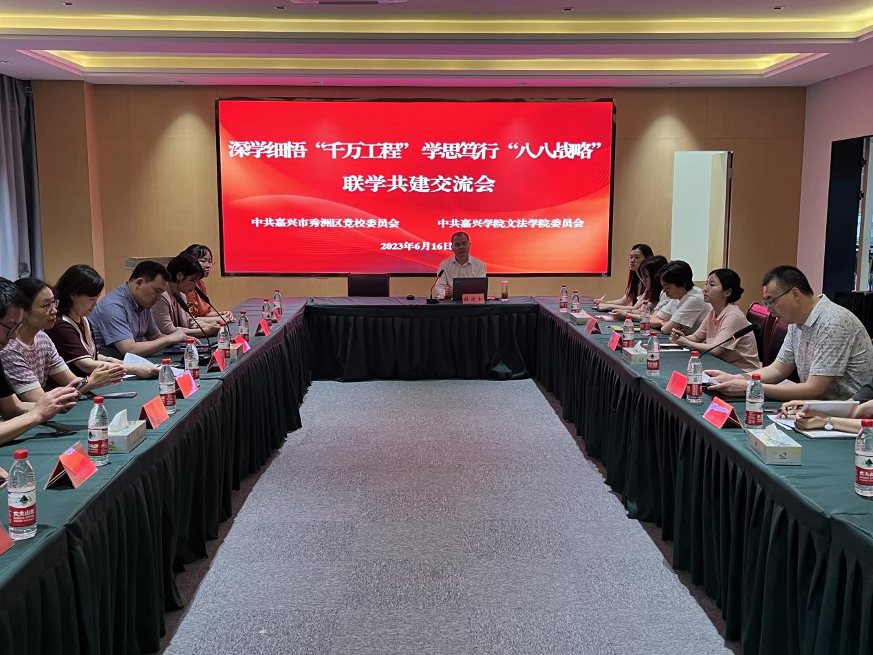 双方先后参观了秀洲区现代城乡融合体验中心和菱珑湾,在讲解员的解说下,深刻了解并体验了秀洲区国家城乡融合发展试验区创建情况和数字化科技应用,以及菱珑湾的建设发展情况。随后召开联学共建交流会,杜建新在会上为党员们带来了一堂名为“‘八八战略’的深刻内涵与实践路径”的党课,李昌卫为在座党员同志们领学习近平总书记关于“千万工程”和“浦江经验”两个重要批示精神。杜建新表示,“八八战略”体现出中央精神与浙江实际的结合,见效于浙江广大党员干部群众的共同奋斗,今后我们更要忠实践行“八八战略”,砥砺奋进。洪坚结合自己担任农村工作指导员的经历谈到20年来我们浙江农村在“八八战略”的指引下,开展“千万工程”,正是咬定一个目标,弘扬一种精神,一任接着一任干,才有了今天的翻天覆地的变化,今天我们要思考从调研中我们受怎么样的启发?我们如何把这种经验运用到教书育人?如何用我们的专业知识更好服务社会与农村?同时也提出学院应将理论课程和实践课程紧密结合起来,让麻豆传媒
