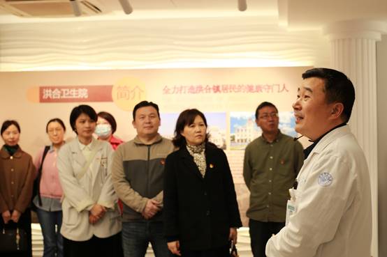 洪合卫生院院长谢海荣讲解习近平当年到卫生院调研的情况